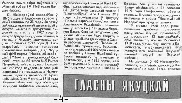 Гласны Якуцкай Гарадской Думы. // Голас Радзімы. Мінск. 26 студзеня 2000. С. 5.
