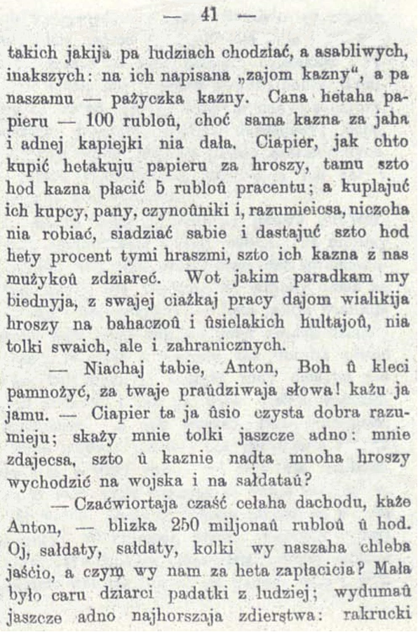 “Dziadźka Anton abo hutarka ab ûsim czysta szto balić, a czamu balić - nie wiedaim...” уяўляла сабой перапрацаваны пераклад польскамоўнай брашуры Шымана Дыкштэйна “Ojciec Szymon”, са “зьменамі і дапасаваньнем да мясцовага жыцьця”.